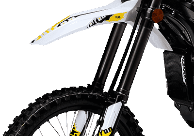 Ход обновленной подвески электромотоцикла Surron составляет 240 мм в передней и задней частях: так, Ultra Bee предлагает широкий диапазон для регулировок подвески под различные стили езды.