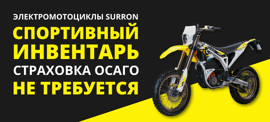 Однако на электромотоциклы Surron оформление ОСАГО не требуется, поскольку они записаны и котируются как спортивный инвентарь.